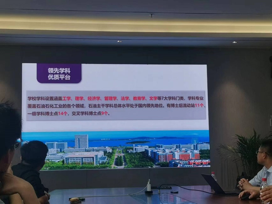 邹老师首先介绍了中国石油大学(华东)的学校基本情况与人才政策,校区坐落于海滨城市青岛,景色优美,生活条件十分便利。中国石油大学(华东)是教育部直属全国重点大学、国家“211工程” 和“985优势学科创新平台”,是石油科技、管理人才的摇篮。