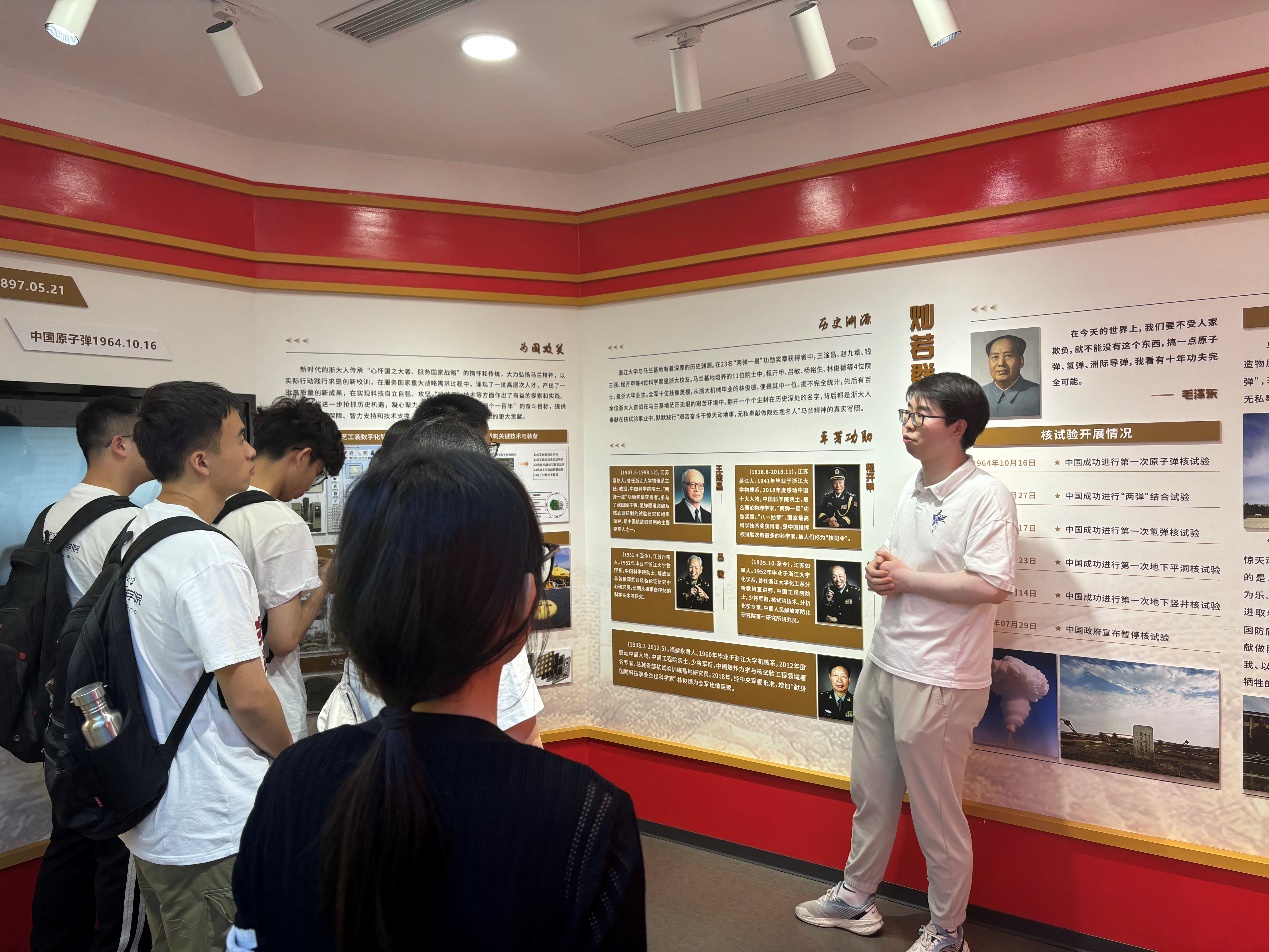 在参观过程中,讲解员陈熠钧细数了马兰基地的起源、历次核试验的开展情况以及马兰工作室的初心与成果。他详细介绍了林俊德院士的感人事迹,让人们深刻感受到了“艰苦奋斗干惊天动地事,无私奉献做隐姓埋名人”的马兰精神。同时传递了浙大学子传承马兰精神,做新时代马兰人的坚定信念。