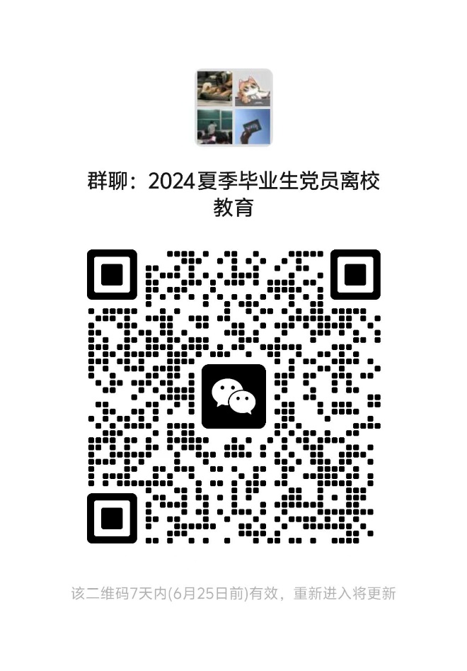 1.请各党支部落实与会人员,提醒夏季毕业生党员使用微信扫码进入群聊,后续通知将发布在微信群内。群二维码如下: