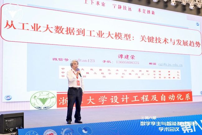 2024年7月15日-7月17日,“第八届数字孪生与智能制造服务学术会议”在浙江杭州成功召开。国家智能制造专家委员会主任、中国机械工程学会荣誉理事长、华中科技大学李培根院士,浙江大学副校长王立忠教授,国际智能制造联盟主席、中国机械工程学会副理事长、浙江大学工学部主任杨华勇院士,浙江大学谭建荣院士,中国机械工程学会副秘书长陈超志,天津大学顾佩华院士,瑞典皇家理工学院王力翚院士,新西兰奥克兰大学徐旬教授,中国生产力促进中心协会副理事长蔡文沁,西安交通大学学术委员会副主任梅雪松教授,华侨大学副校长黄辉教授,郑州轻工业大学副校长肖艳秋教授,浙江省经信厅数字经济处邬韶杭处长,北京航空航天大学国际前沿交叉科学研究院院长陶飞教授,清华大学工业工程系党委书记李乐飞教授,西北工业大学机电学院党委书记张映锋教授,暨南大学珠海校区管委会执行主任屈挺教授,宁德时代新能源科技股份有限公司首席科学家吴凯,浙江大学机械工程学院党委书记项淑芳老师、常务副院长徐兵教授、副院长刘振宇教授、高端装备研究院常务副院长谢海波教授,以及来自国内外百余所高校、科研院所和企事业单位的1100余名代表参加会议。