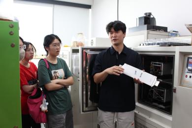 8月7日,交流团抵达韩国科学技术院。在实验室参观中,韩国科学技术院的师生现场展示了课题组研发的机器狗、3D打印机、机械臂等实验设备,并请交流团的学生参与体验机械外骨骼装置。Seungchul Lee、Ikjin Lee、Seunghwa Ryu三位教授团队分别介绍了各自实验室概况以及研究方向,并与交流团师生围绕人工智能与机械交叉领域的学术问题展开讨论。