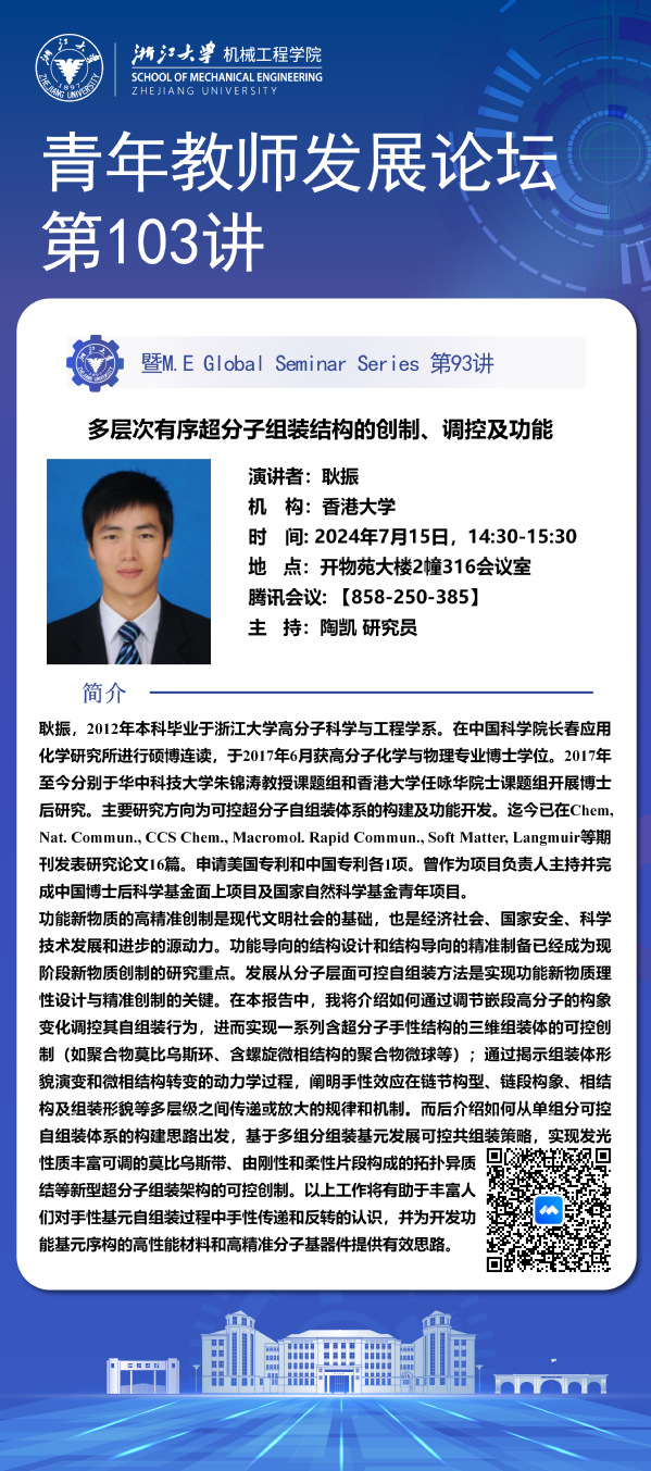 浙江大学机械工程学院第103期青年教师发展论坛暨M.E Global Seminar Series第93讲