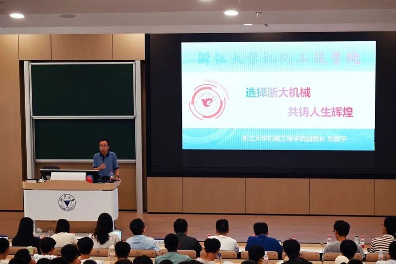 2024年9月6日,浙江大学机械工程学院2024级机械工程专业宣讲会在紫金港校区段永平教学楼举行。本次宣讲会设了一个主会场,及四个分会场,通过“线下报告+线上直播”的方式覆盖到了工科试验班的700余位新生。出席本次宣讲会的老师和学生代表有:机械工程学院副院长刘振宇教授,机械工程专业方向教学主任彭涛副教授、刘昊副教授,2024级本科新生班主任代表徐凯臣老师、潘程枫老师,优秀学生代表李坰其,本科生科王芳官老师、吴应好老师,团委邵文琦老师。