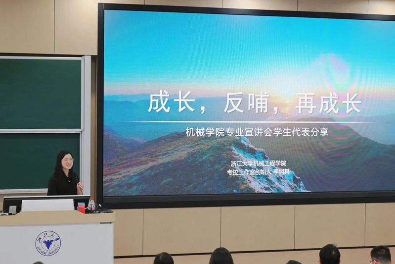 宣讲会伊始,由刘振宇老师做学院介绍及机械工程专业介绍。刘振宇老师以“选择浙大机械 共铸人生辉煌”为主题,用选择浙大机械的八大理由简明扼要介绍了机械工程专业的优势以及浙江大学机械工程学院的优势。刘振宇老师用富有感染力的演讲激起了2024级本科新生对机械工程专业学习的热情,对浙江大学特色培养机械工程专业人才教育的憧憬。