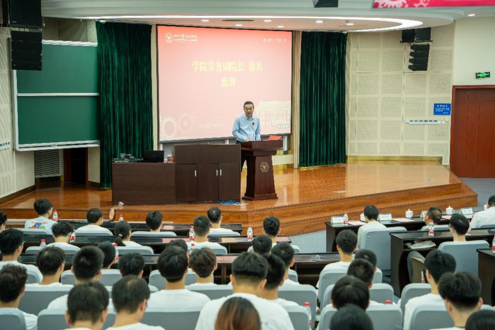 在庄严的国歌声中,开学典礼正式开始。机械工程学院常务副院长徐兵向2024级研究生新生表示欢迎并致辞。他指出,科研不仅是技术的追求,更是责任的担当,要志存高远,胸怀家国。科研需要细心,也需要耐心,要甘于坐“冷板凳”,敢于啃“硬骨头”。希望同学们今后在机械工程学院不断提升自己,肩负起新时代赋予的责任,在实现中华民族伟大复兴的征程中跑出自己最好的成绩。