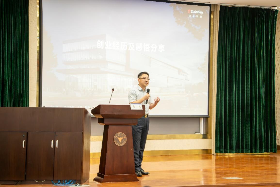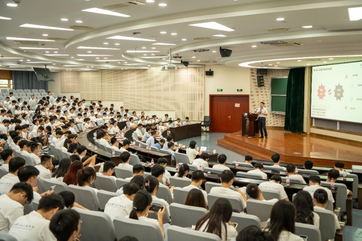 最后,校友代表、迅实科技联合创始人及CEO金良为大家作精彩报告。金良先生通过分享自己的创业经历,勉励新生们要学会勇敢面对挫折与失败,在不断探索中寻求突破。他指出,在这个充满机遇的时代,抓住机会,厚积薄发才能在未来站上时代的潮头。