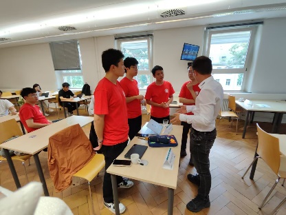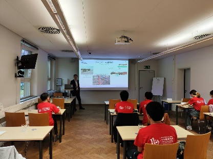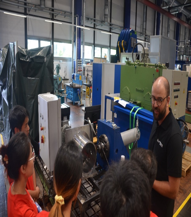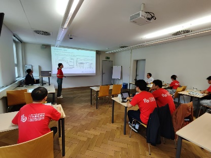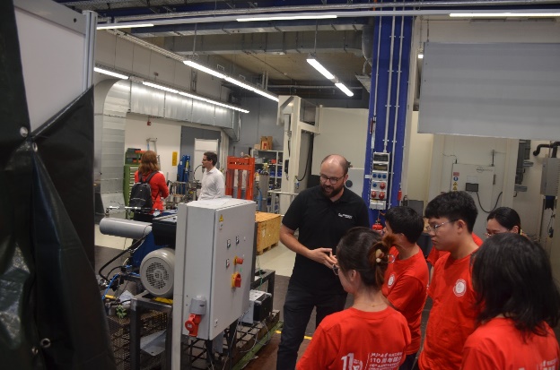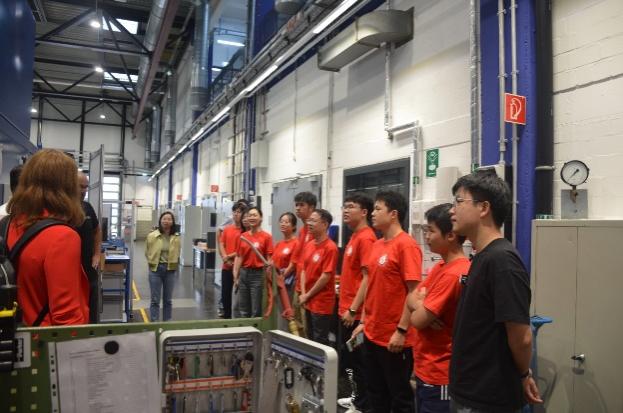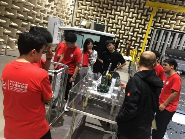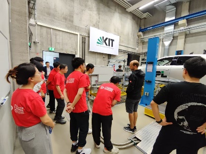 9月4日-9月5日,交流团前往卡尔斯鲁厄理工学院。校友赫连老师接待了交流团,并介绍了KIT的历史、校区分布以及MOBIMA研究所的研究重点,着重提及了MOBIMA和工业界的深度合作。随后,双方举行学术讲座活动,Johannes Klotz先生作了关于液压冲击试验台研制的报告,赫连老师作了题为Constrained Motion Control of Hydraulic Actuators的报告,交流团的5位博士生也分别介绍了各自的研究方向。此次学术讲座气氛热烈,报告结束后双方围绕相关学科进行了更加深入的研讨。稍作休整后,交流团参观了MOBIMA的实验室和地上消声测试空间。实验室中陈列着大型的路况模拟轮胎实验台、油电混动实验台等,负责人重点介绍了可变轮距车辆测试台。随后,负责人还带领交流团参观了位于地下的装置主体。同学们深入装置中心,沉浸式观察了内部结构。最后,交流团在接待师生的带领下参观了KIT位于市中心的另一个校区,卡尔斯鲁厄理工学院交流行程圆满结束。