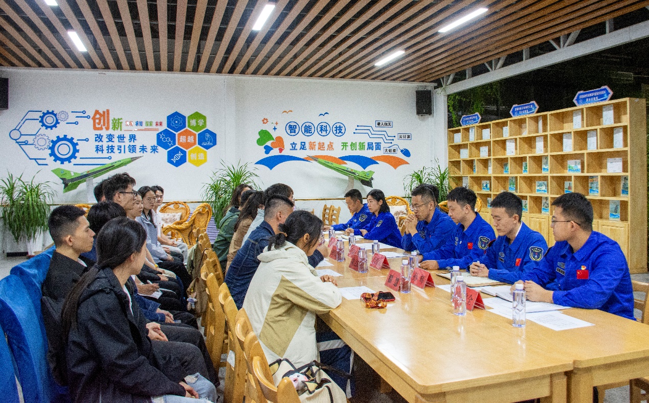 在欣赏了校友风采的同时,这些宝贵的经验分享不仅为同学们提供了极具价值的参考,也激发了大家对未来发展的无限遐想与期待。在互动交流环节,实践团师生们积极发言,针对自身重视的问题向校友们咨询和讨论,主要涵盖了就业政策、工作待遇、专业技能需求、行业发展情况、相关科研院所推荐等。校友前辈们与基地相关领导结合自身经历,认真地为学生们解答了关于航天科技发展、职业规划、技术创新等方面的疑问。校友们勉励学弟学妹们要坚定理想信念,勇敢迎接未来的挑战,特别是在航天领域,创新与坚韧是成功的关键。亲身经历者的真实建议,为同学们后续工作开展和就业导向提供了宝贵参考。亲身经历者的真实建议,为同学们后续工作开展和就业导向提供了宝贵参考。通过此次交流,实践团师生们不仅加深了对航天事业的理解,也在校友们的鼓舞下,对未来的学习和职业生涯有了更加清晰的目标和规划。