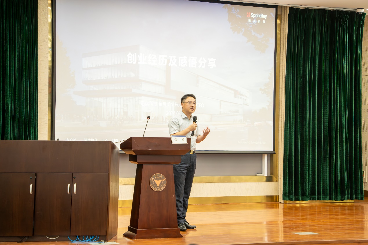 接下来,金良校友以个人创业路上几次重要的转折经历向同学们传递了他在职业生涯中的深刻领悟,分享了迅实科技全球化的历程和经验。创业初期需要踌躇满志,但也要有面对路上危机的强大内心准备;积极探索,敏锐把握市场风向,并采取策略打造自身的竞争优势;在不断尝试中,最终转型进入牙科3D打印领域,有技术门槛高、市场前景非常好的行业。金良校友介绍为了在竞争中突围,引领齿科行业技术的迭代更新,迅实科技主要采取了三个策略:扬长避短和专注抓客户痛点,注重人才与战略合作,不断升级加高自身竞争壁垒。对于个人而言,实践能力,包括技术技能、项目管理和团队能力的培养很重要;对解决问题的能力要求也越来越高,培养自己善于发现分析问题,灵活应变、见招拆招;在激烈的竞争中,学会保持空杯心态,不断提升认知层次。