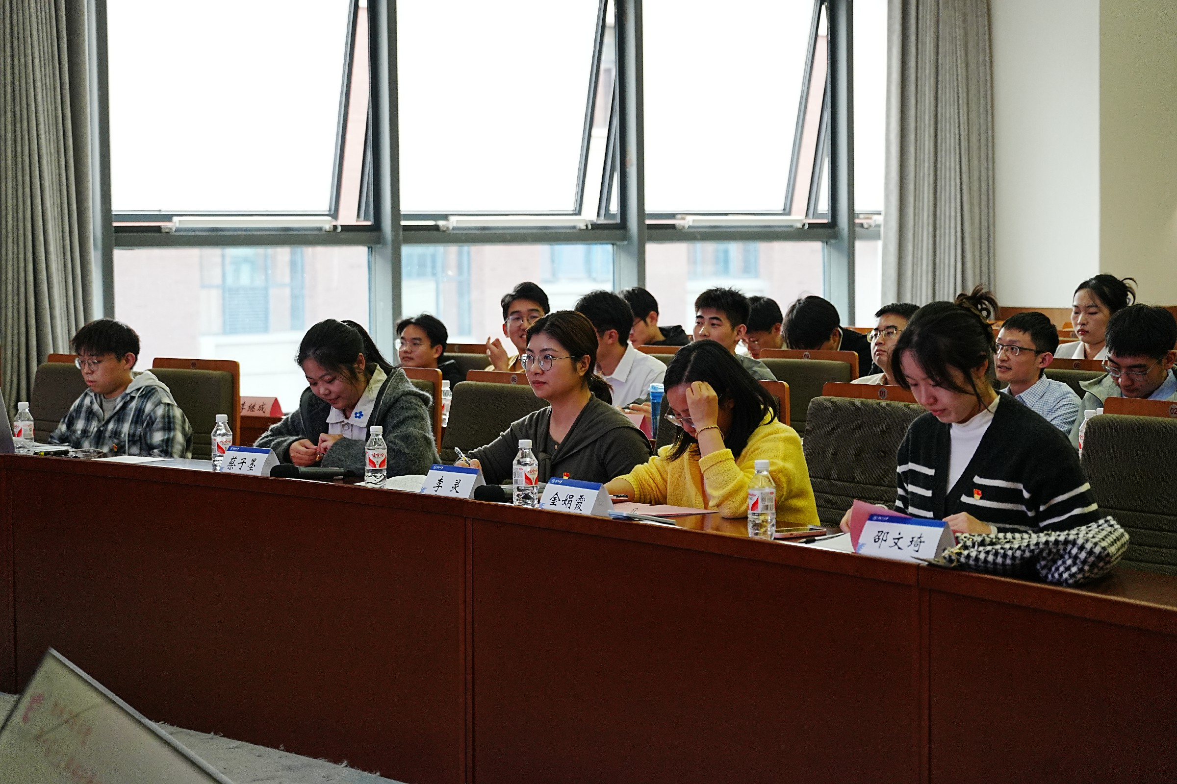 机械工程学院团委书记金娟霞老师、团委副书记李灵老师、团委副书记邵文琦老师、浙江大学第十一届研究生党支部书记素能大赛一等奖获得者蔡子墨同志担任本次大赛评委。参加大赛的还有学院全体学生党支部书记、党员代表及党建中心骨干,大赛由党员素质发展中心文传奇同志主持。