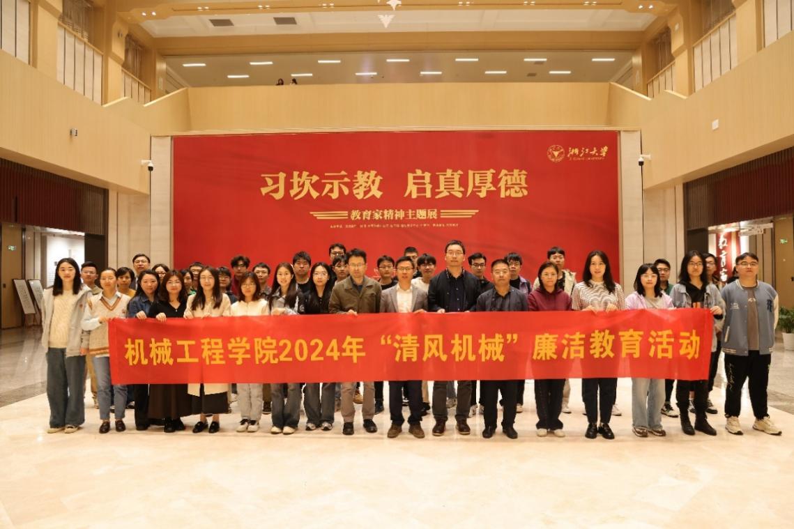 为深入贯彻落实党的二十大和二十届中央纪委三次全会精神,加强学院师生廉洁教育,涵养求真务实时代新风,机械工程学院于2024年11月15日开展“清风机械”廉洁教育活动,组织师生前往浙江大学“习坎示教启真厚德——教育家精神主题展”参观学习。机械工程学院党委副书记、纪委书记俞磊和各教工党支部、学生党支部纪检委员、机关党支部党员等40余名师生参加此次活动。