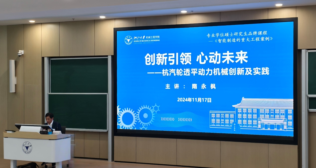 11月17日,杭州汽轮动力集团股份有限公司国家企业技术中心副主任、副总工程师隋永枫应邀为我院2024级专业学位硕士研究生带来题为《创新引领 心动未来——杭汽轮透平动力机械创新及实践》的精彩报告。