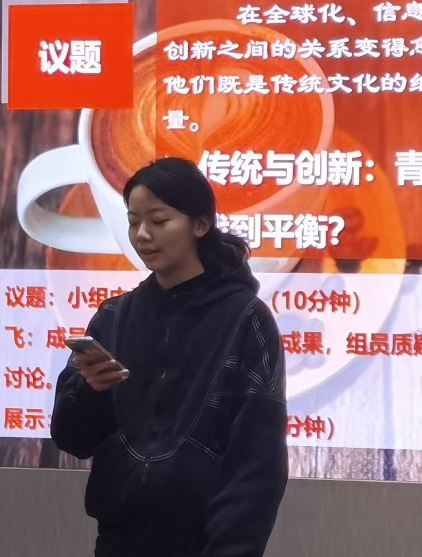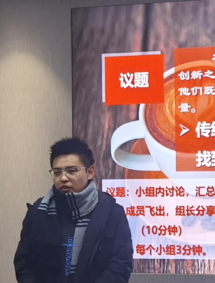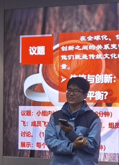 最后,全体成员们以“传统与创新:青年如何在文化传承和创新中找到平衡?”为话题开展了世界咖啡讨论,在思想碰撞的同时完成了成员间的破冰,其中三位同学作为代表进行了总结发言。