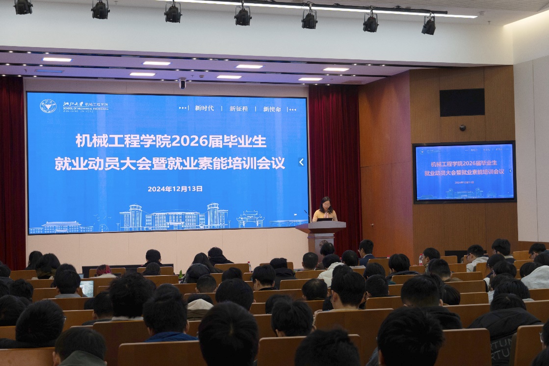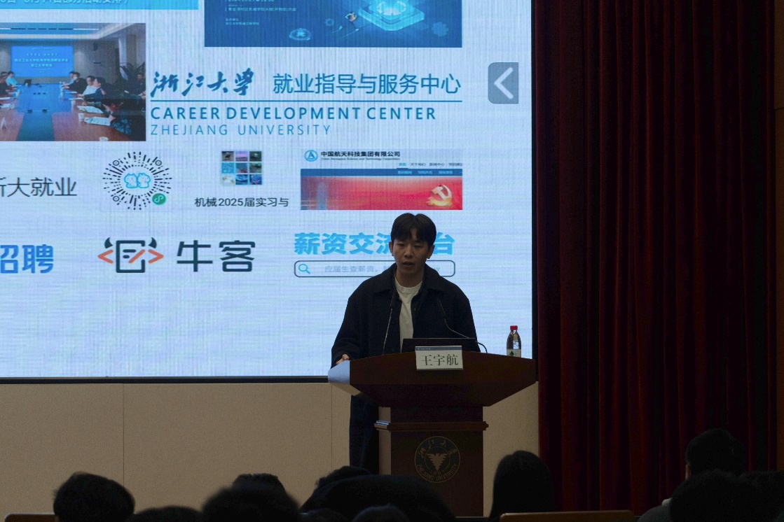 12月13日下午,浙江大学机械工程学院2026届毕业生就业动员大会暨就业素能培训会议在开物苑2-328报告厅顺利举行。浙江大学机械工程学院党委副书记俞磊,辅导员、优秀毕业生代表及2026届毕业生参加了本次大会,浙江大学机械工程学院校友代表、中国空气动力研究与发展中心大校张丁琼,浙江大学学生职业发展培训中心老师胡昌翠应邀出席,会议由金娟霞主持。