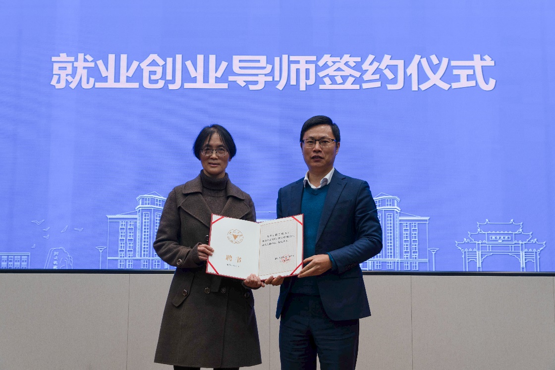 随后,俞磊书记为张丁琼大校颁发机械工程学院就业创业导师聘书。