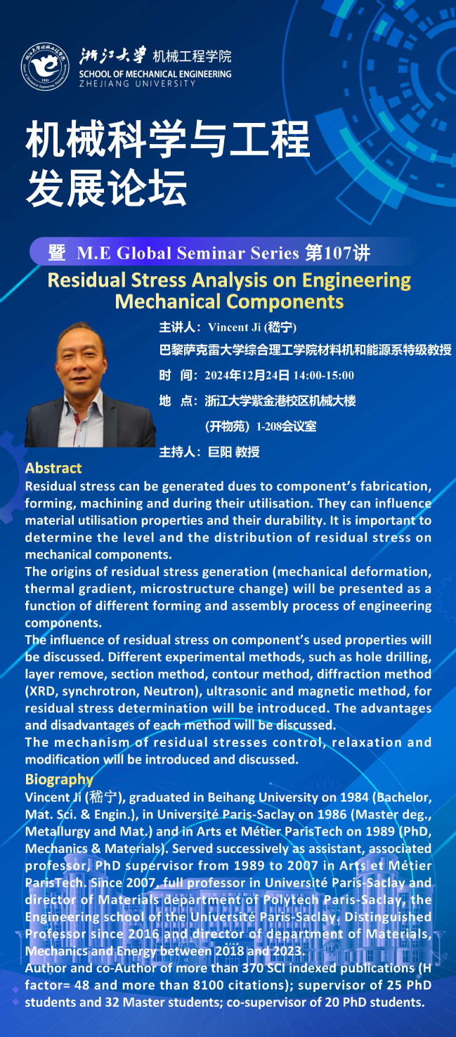 浙江大学机械工程学院机械科学与工程发展论坛暨M.E Global Seminar Series第107讲