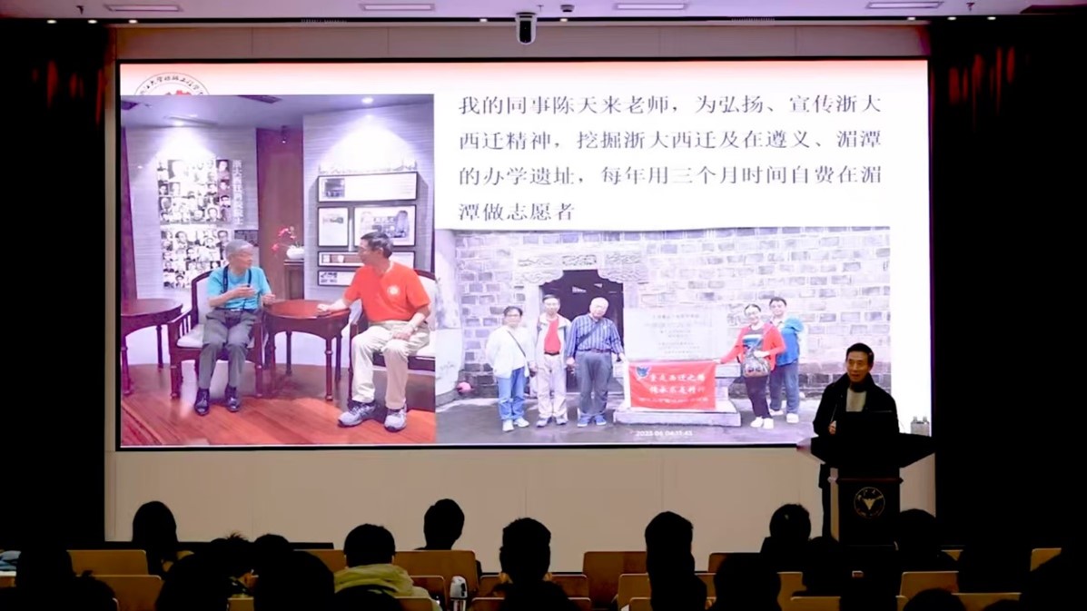 本次活动邀请浙江大学机械工程学院教授、浙江大学关工委求是宣讲团成员、浙江省教学名师施岳定教授开展“弘扬求是精神,争做时代新人”的主题宣讲。会议由机械工程学院党委副书记俞磊老师主持。
