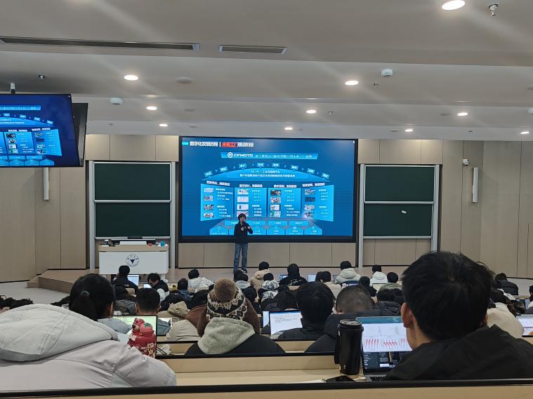 最后,三位同学分别与高总进行交流互动,同学们分别向高总请教“当前春风动力的全球设计云平台是否可以做到比较高的通用性,从而赋能给别的平台进行使用”、“当前低空经济较为火热,如何看待低空经济,春风动力是否考虑在这一板块进行布局”、“春风动力在实现低成本的智能系统平台的过程中,主要运用哪些关键技术”这三个问题,高总详细为同学们解答相关问题,在掌声和称赞中,本次讲座圆满结束。