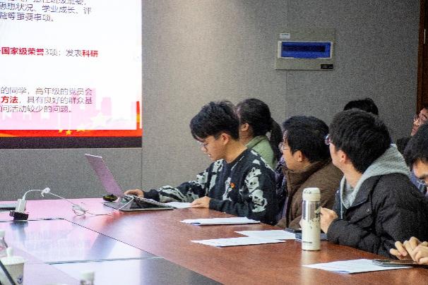 学院党委副书记俞磊向各位党支部书记提出建议,希望各支部关注学生需求,开展富有意义的党建活动来激发学生党员的参与热情。同时,要紧密联系结对支部、党建联络员老师等资源,将支部建设成为学生学习成长的重要阵地,继续发扬优良传统,实现支部的传承与发展。