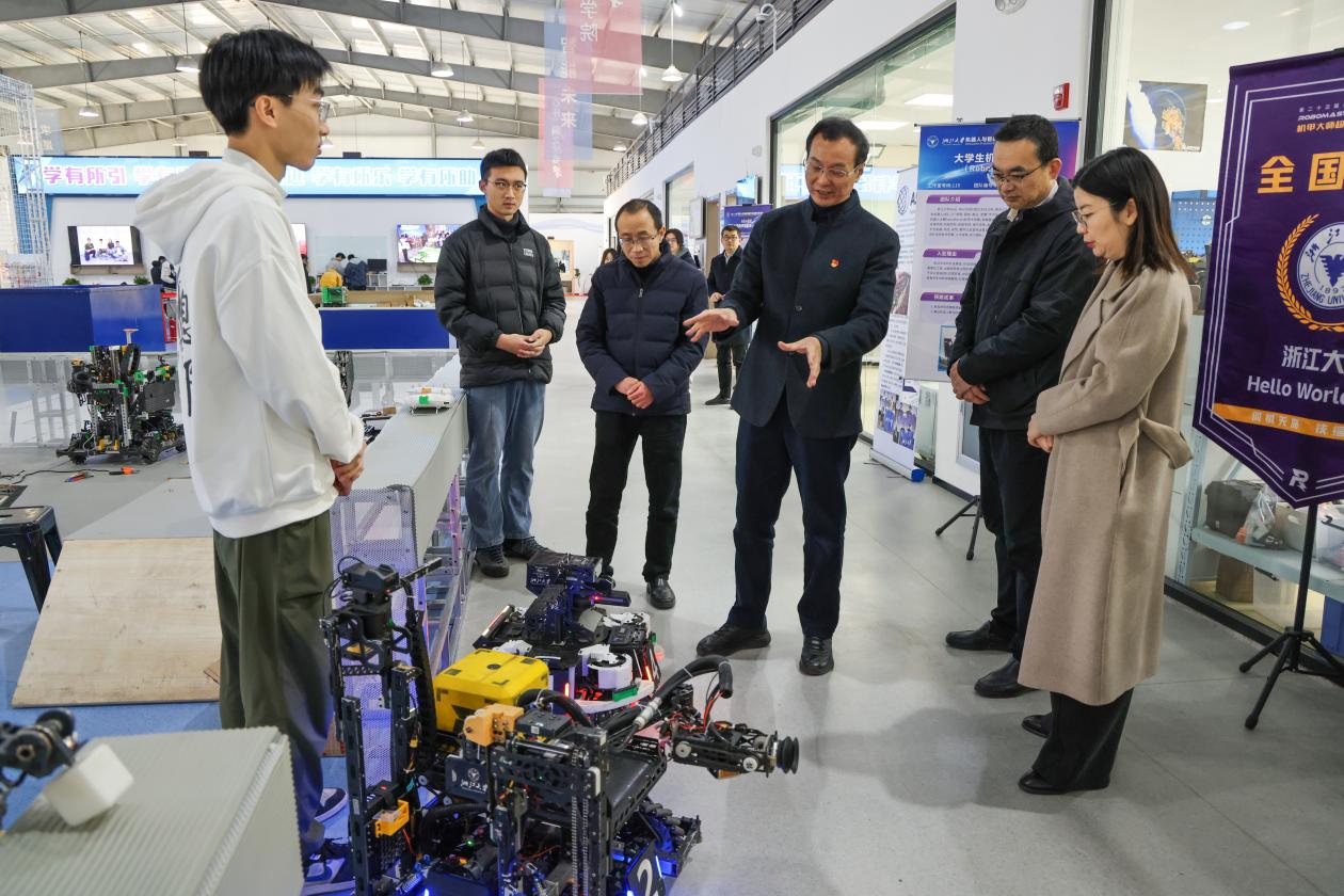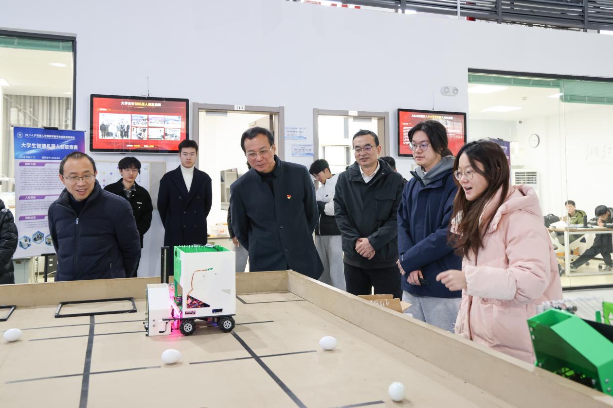 1月9日,教育部党建工作联络员赖虹凯莅临浙江大学机器人与智能装备学生创新实践基地调研指导。我院党委书记项淑芳、常务副院长徐兵、副院长刘振宇、实验教学中心常务副主任朱新杰以及学院教师代表陪同调研。
