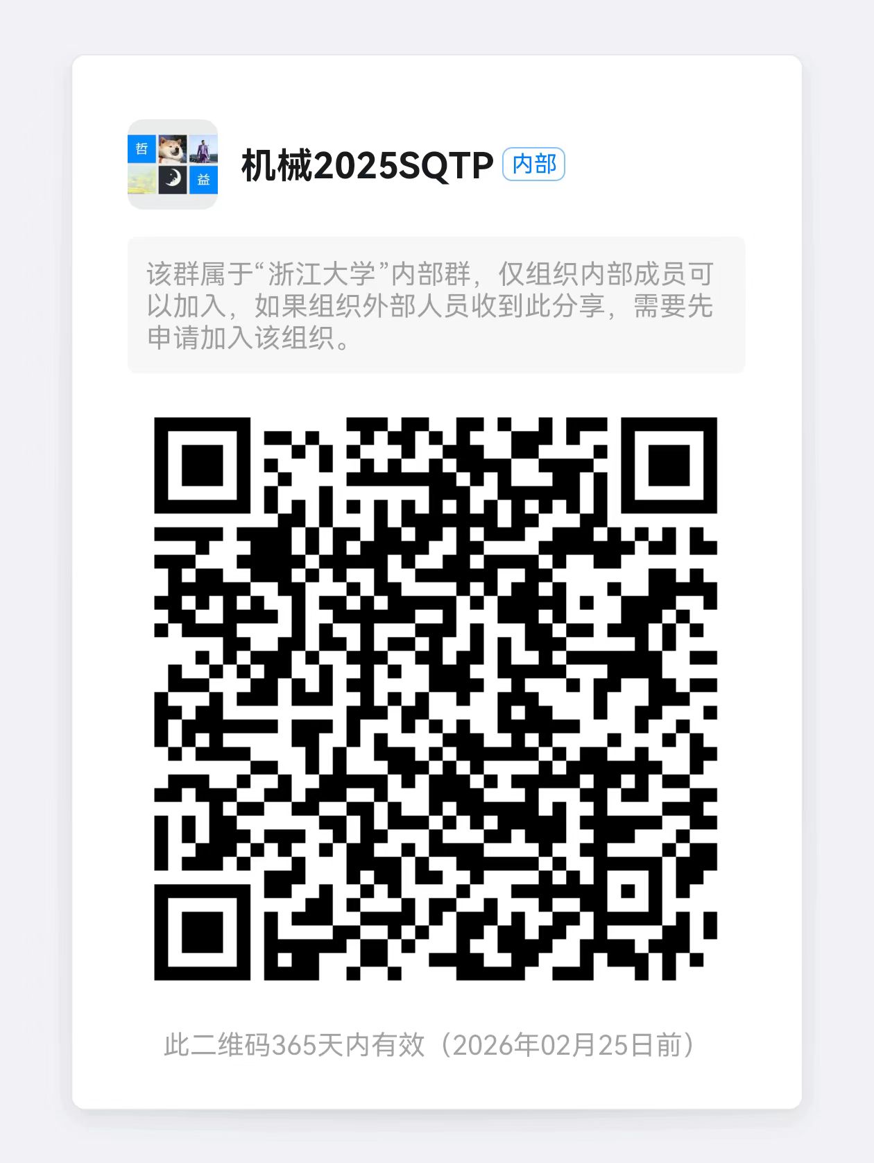 (二)请各SQTP学生负责人于【3月9日】前扫码加入钉钉群机械2025SQTP。