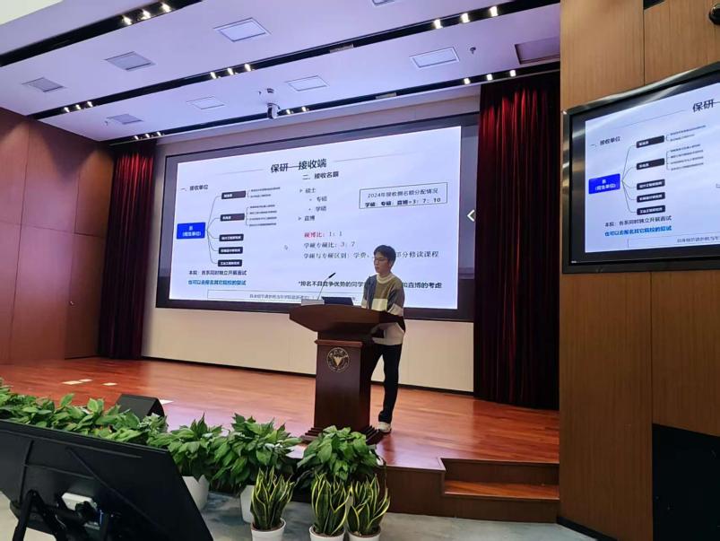 赵若辰学长则重点介绍了直博保研的流程、如何判断自己是否适合直博保研,以及需要提前准备的工作。他指出,直博保研的流程主要包括准备申请材料、联系导师、正式推免等几个关键流程。他鼓励同学们综合考虑自身情况,包括学术兴趣、研究能力等,并提前提升学术成绩、积累科研经验,并积极参加各类竞赛和学术活动。