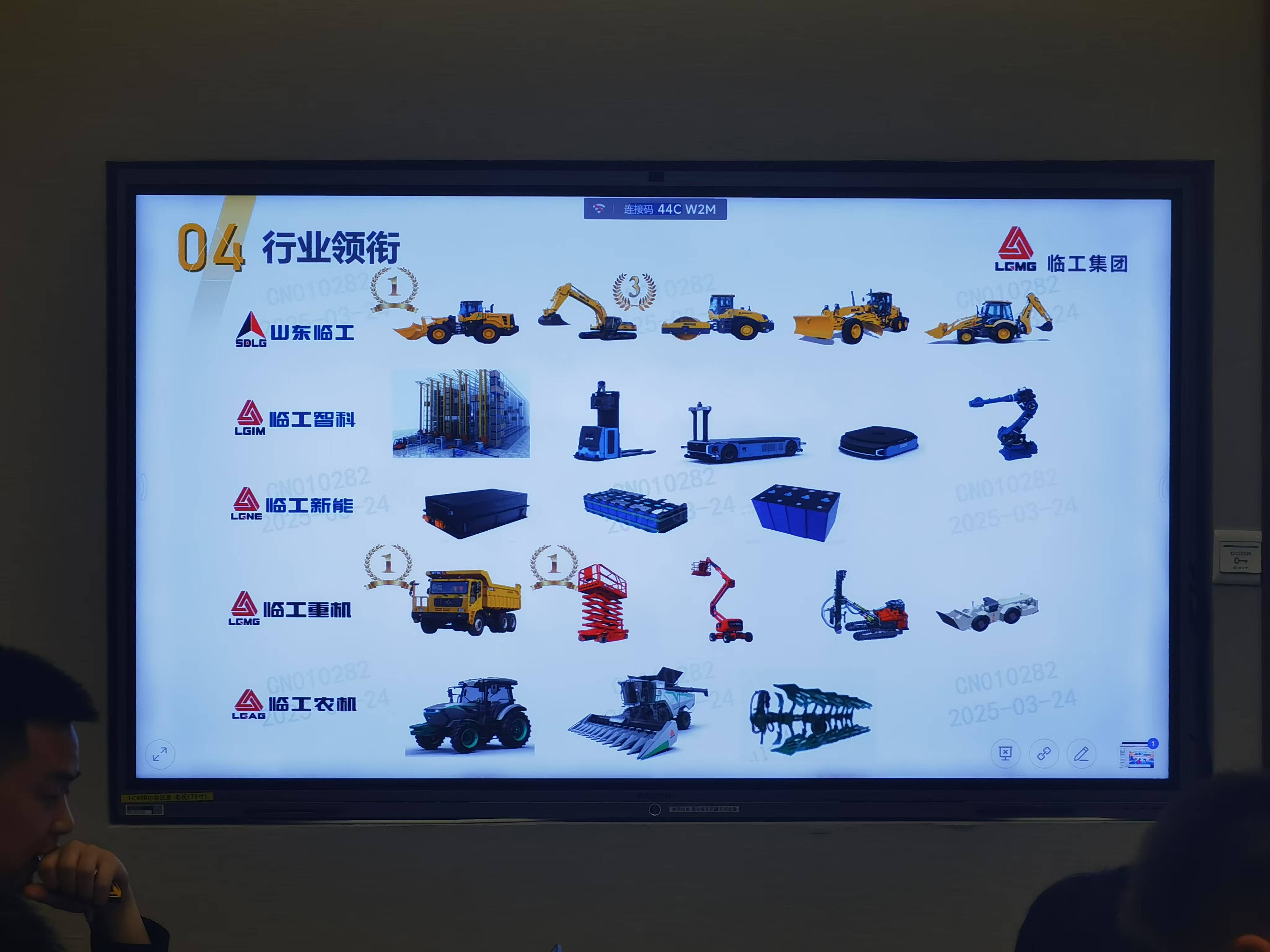 首先,陈经理对山东临工的业务范围与行业地位进行了总体性介绍。山东临工的产品线以工程机械为核心,主导产品有铲运挖掘系列、路面机械系列、矿用车系列和小型工程机械系列等 ,其中轮式装载机被评为山东省名牌产品、中国名牌产品,其经营业务包括相关产品的生产、销售(国内、国际市场)、服务(维修、融资租赁等)与再制造。同时,临工不断丰富产品线,目前涉及汽车电池、作业叉车、工业机器人等产品的研发。