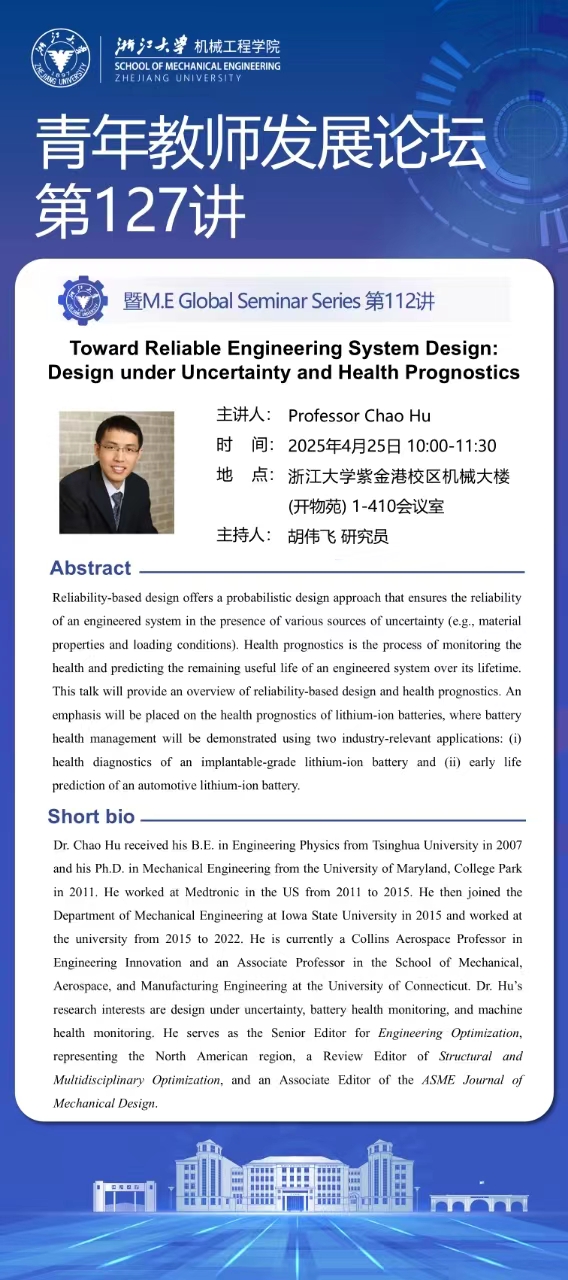 浙江大学机械工程学院第127期青年教师发展论坛暨M.E Global Seminar Series 第112讲