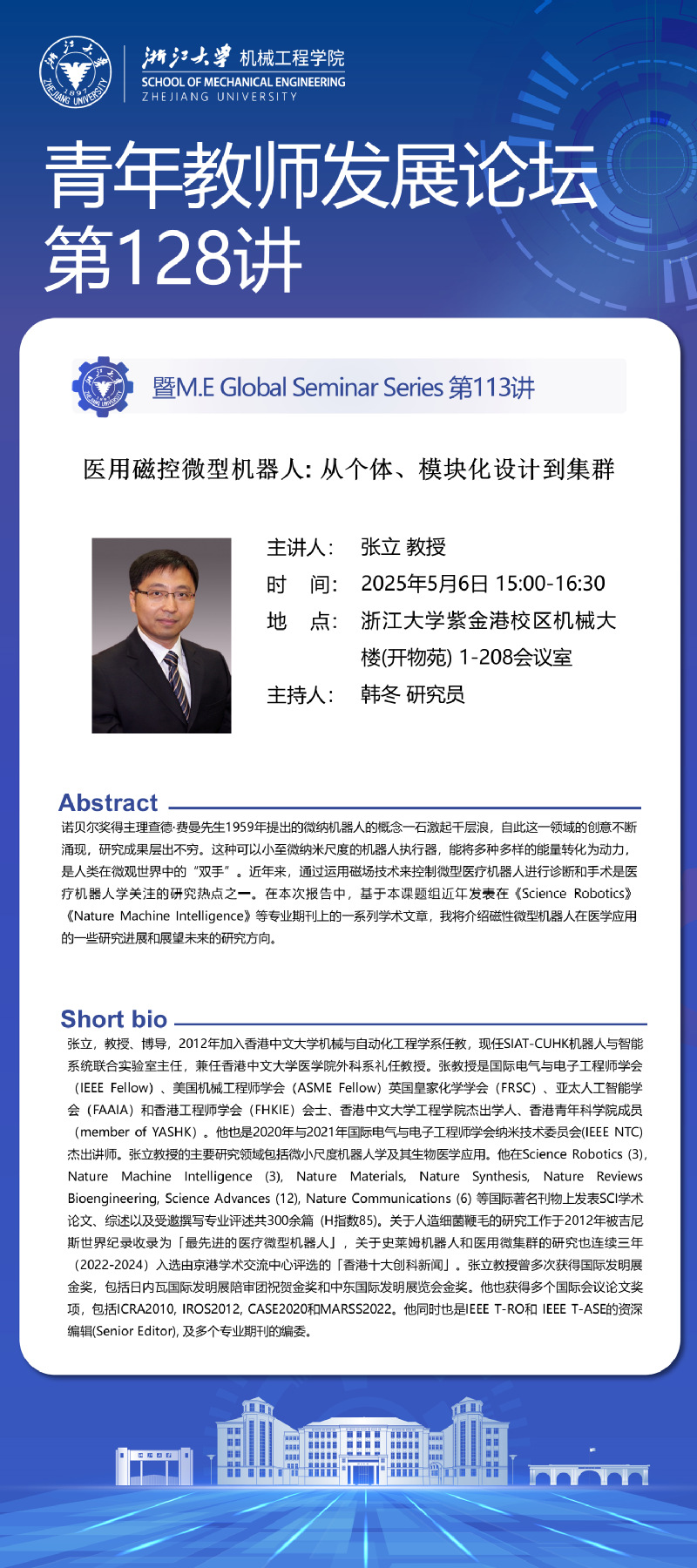 浙江大学机械工程学院第128期青年教师发展论坛暨M.E Global Seminar Series 第113讲