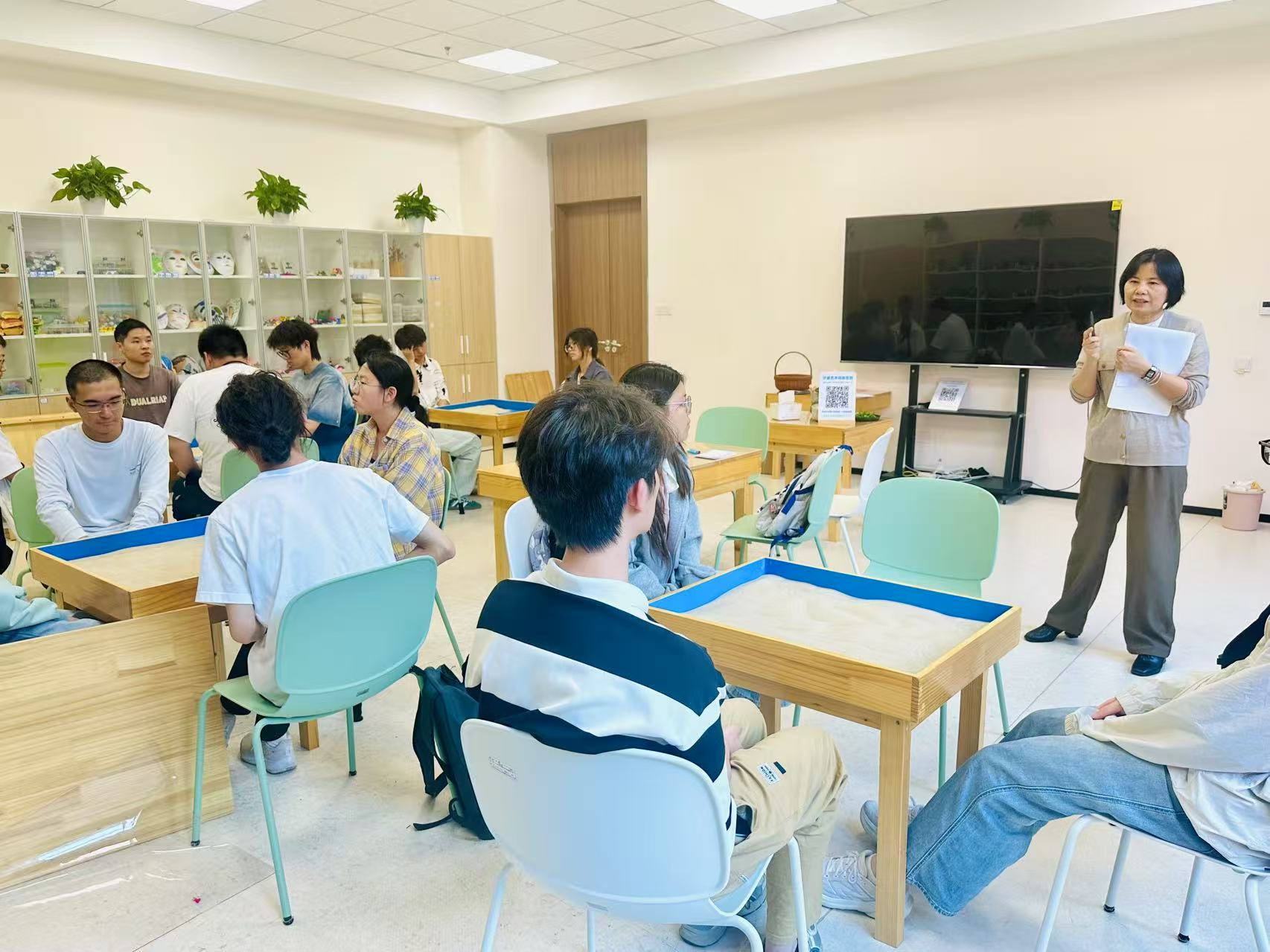 活动伊始,在心理咨询室柔和的灯光下,沙盘里的蓝底白沙仿佛一片等待开垦的海洋,当指尖第一次触碰到沙盘的细沙时,一种奇异的震颤顺着神经末梢蔓延开来。制导老师轻声说:“闭上眼睛,感受沙粒从手缝滑落的感觉。”同学们在感受沙子流动的同时,渐渐放下了日常的压力,全身心投入到这场心灵探索之旅中。