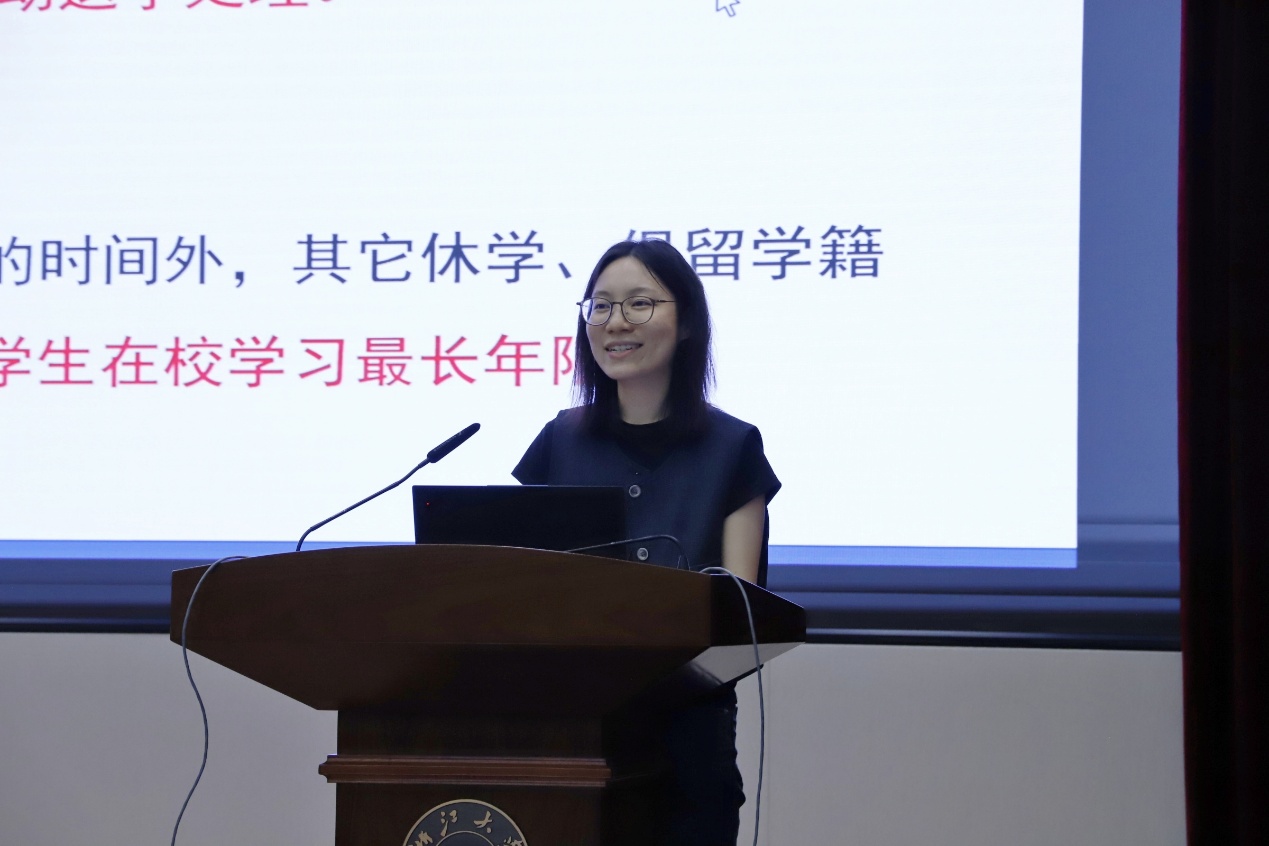 本科教学科秘书吴应好老师向大家介绍了机械工程学院本科生各项工作的基本情况。内容主要覆盖了本科生教育概况、培养过程介绍、选课与考试、学籍管理政策、学院推免政策等方面。