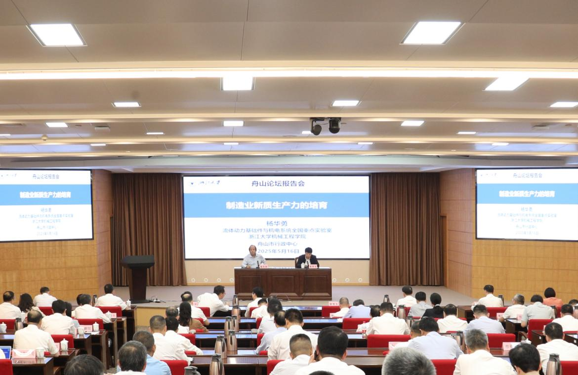 5月16日,舟山市科协联合市委宣传部举办舟山论坛报告会,邀请中国工程院院士、浙江大学工学部主任、流体动力基础件与机电系统全国重点实验室主任杨华勇作了题为《制造业新质生产力的培育》的专题辅导报告。市四套班子领导以及市属各单位、部省属在舟山单位负责人等200余人参与了报告会。