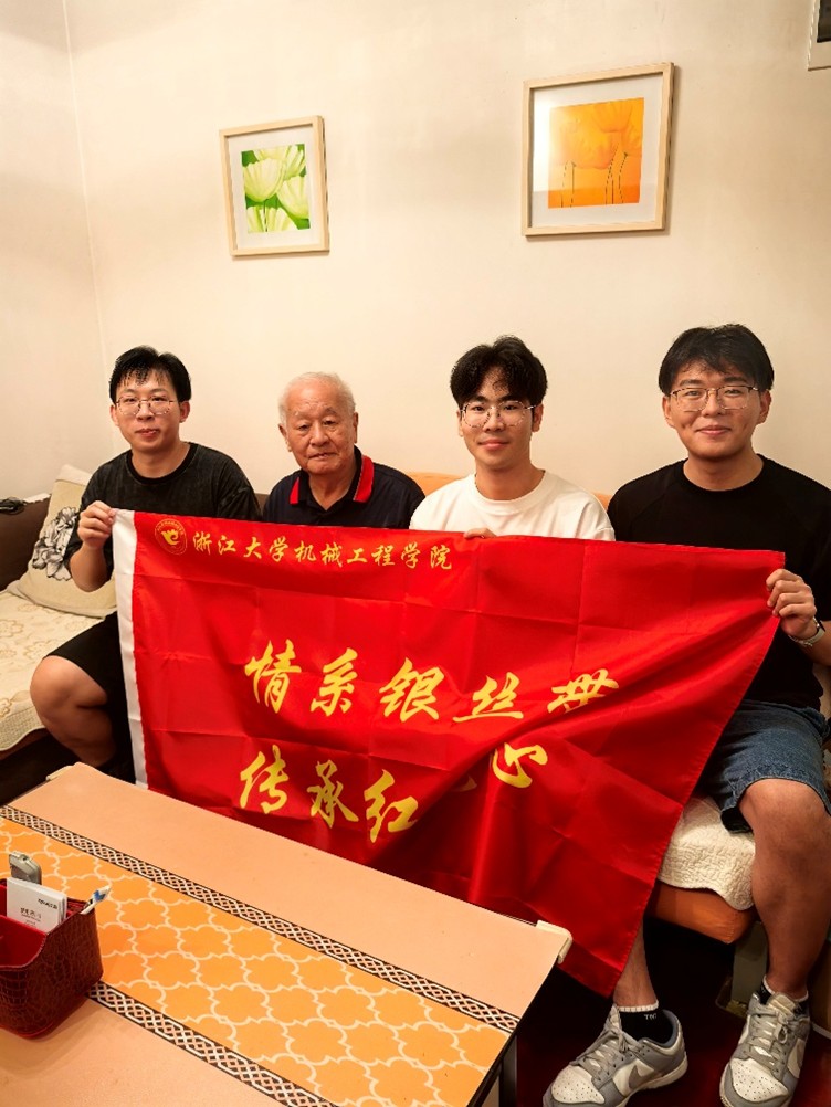 2025年6月8日,浙江大学机械工程学流体动力与智能控制研究所硕士研究生党支部在“情系银丝带,传承红色心”活动号召下,再次走访家住求是村的老党员——齐津老师。这已是我们第二年拜访这位德高望重的前辈。齐老师曾任机械工程学院副主任,浙江大学机械学院退休教工党支部书记,85岁的他虽已年高,但谈吐风趣、记忆清晰,始终以饱满的精神和赤诚的初心,为我们上了一堂生动的“红色党课”。