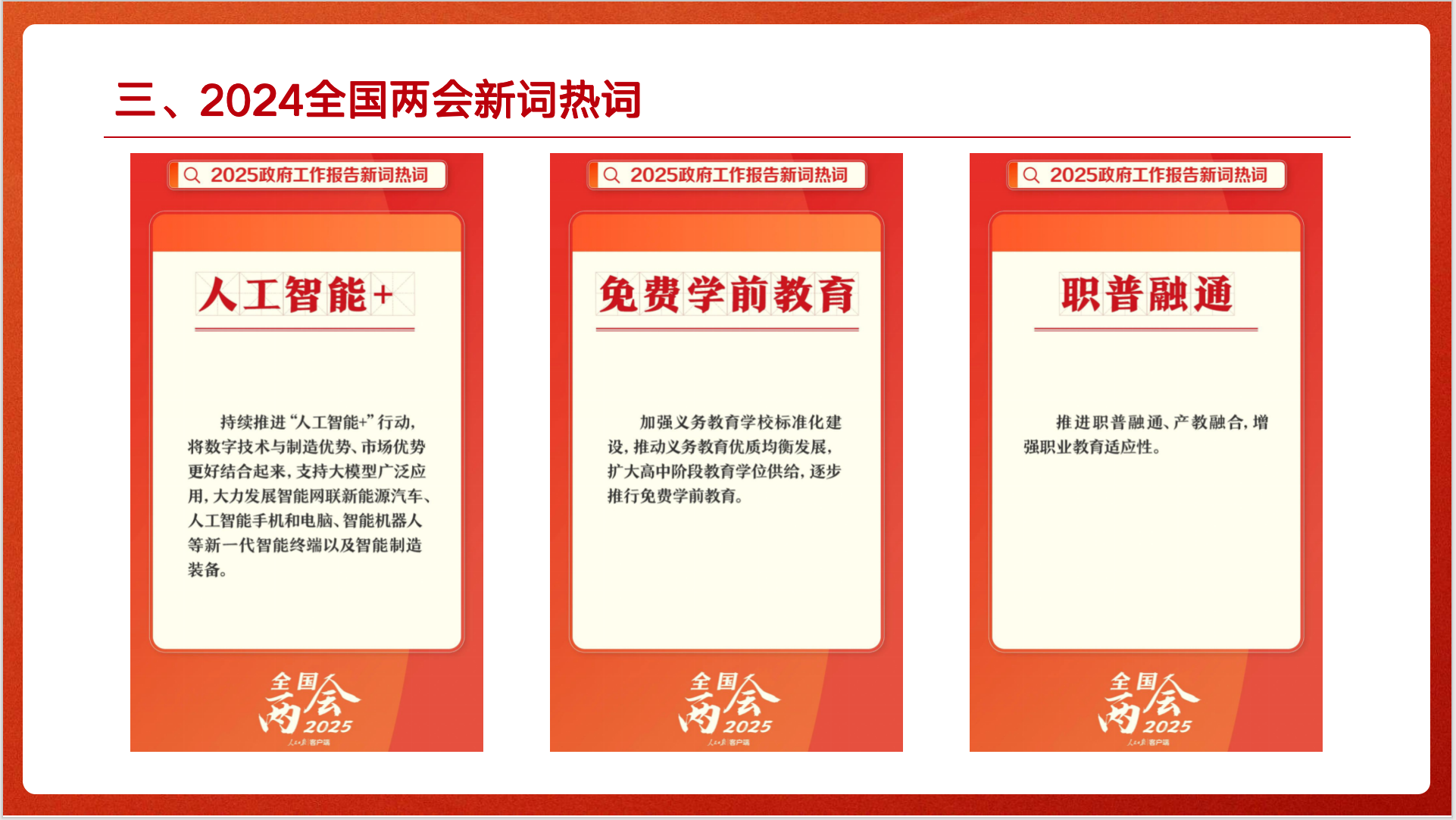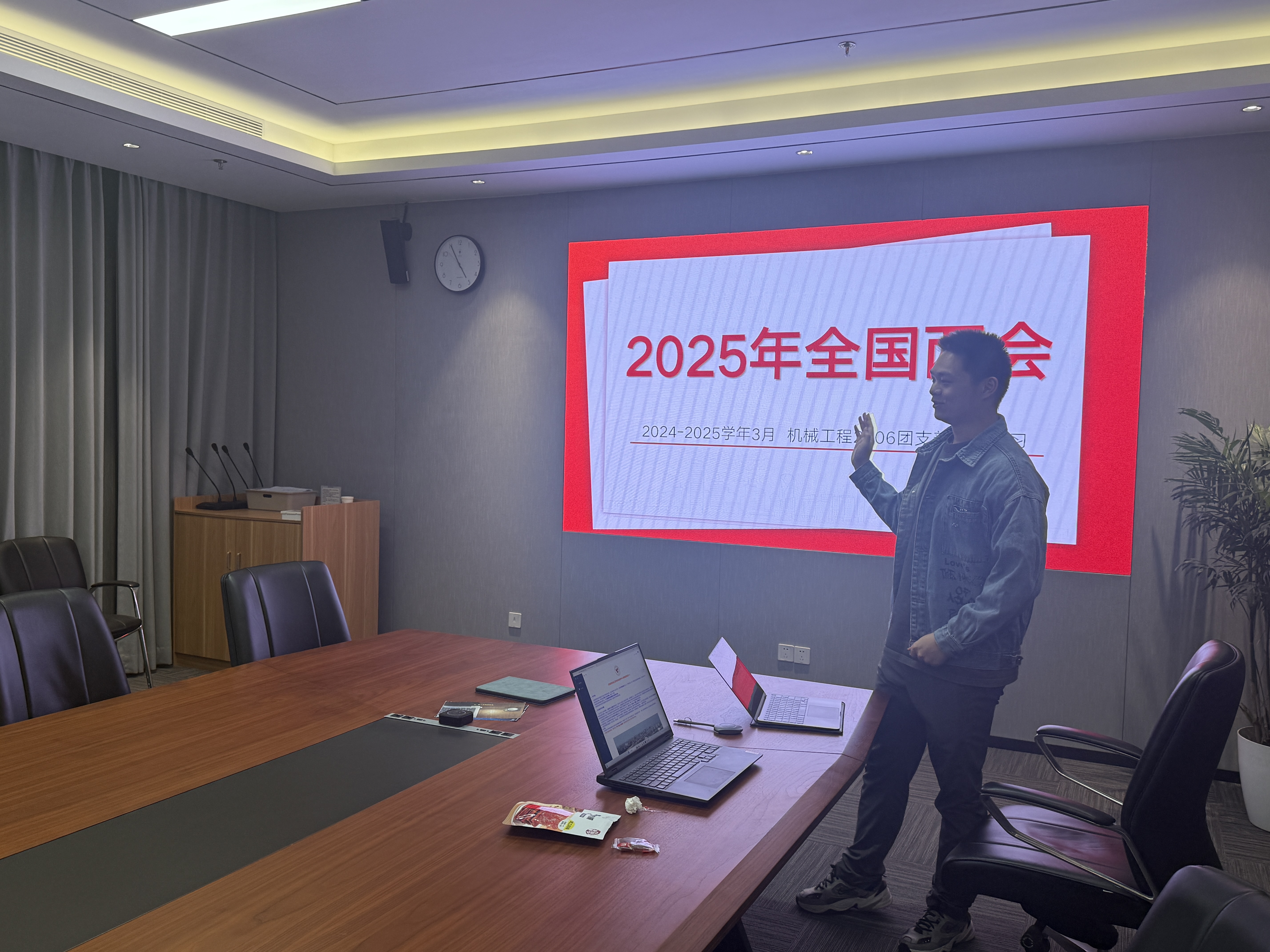 2025年4月16日,机械工程2206团支部在开物苑1幢302会议室组织开展了“热议两会要点,聚焦时代中心”主题团日活动。本次活动聚焦2025年全国两会精神的学习贯彻,旨在引导同学们关注国家发展大势、增强政治素养与时代责任感,活动分为支委会成员专题分享和新词热词小组讨论两个环节。
