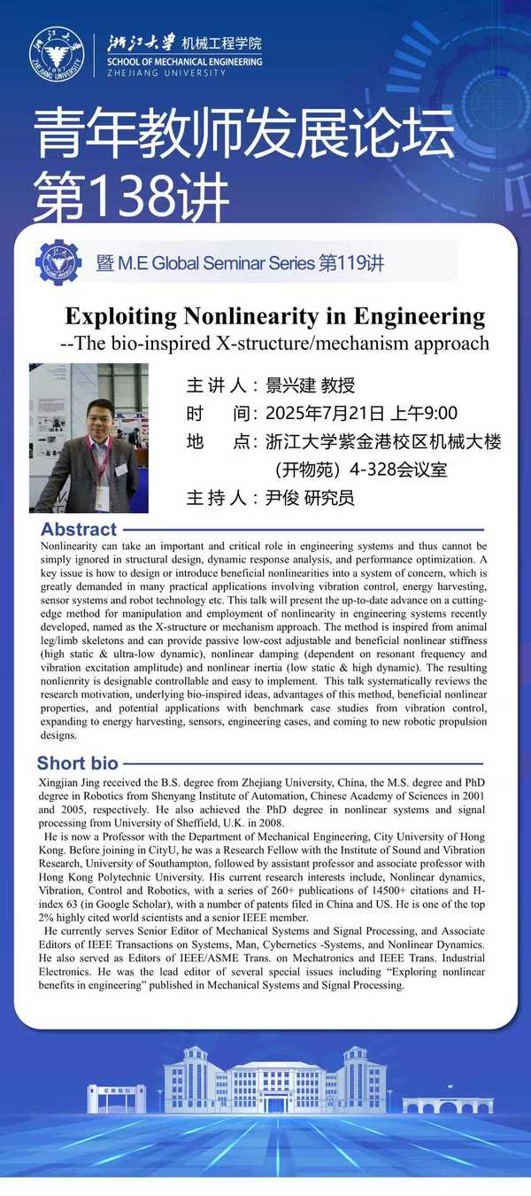 浙江大学机械工程学院第138期青年教师发展论坛暨M.E Global Seminar Series 第119讲