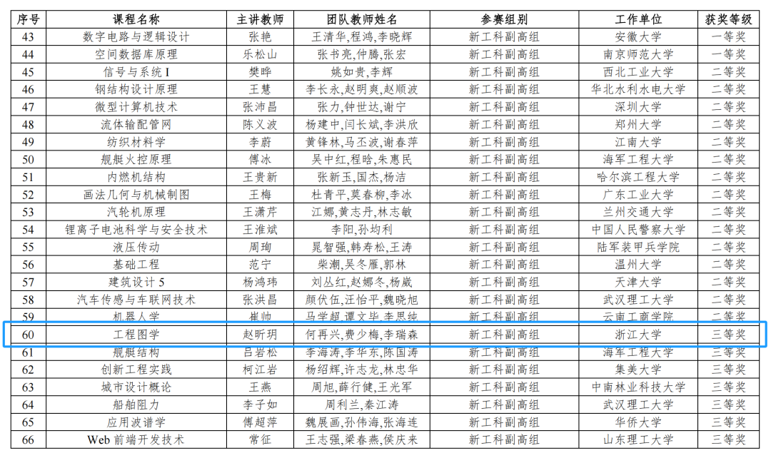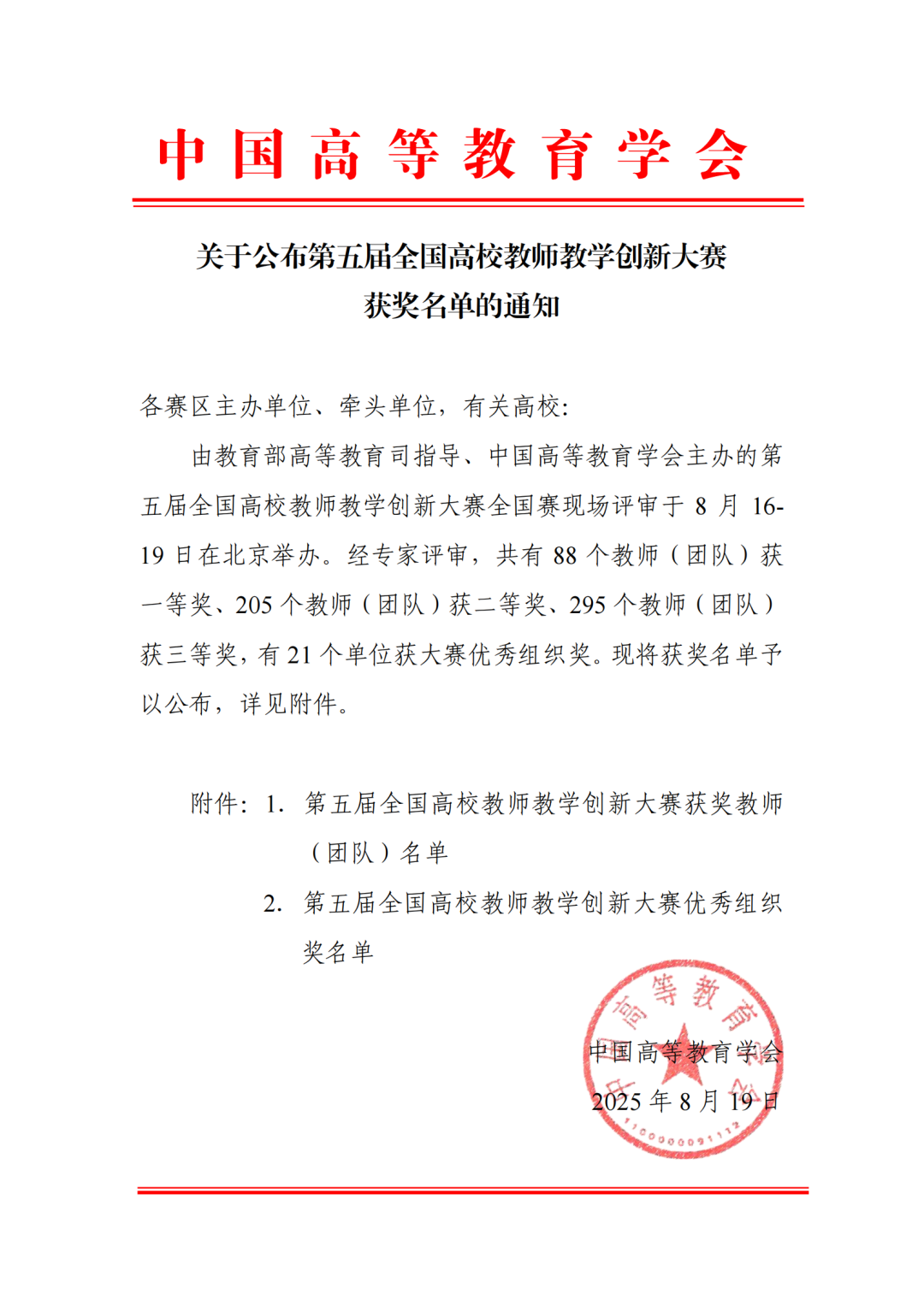 第五届全国高校教师教学创新大赛获奖名单的通知(截取)
