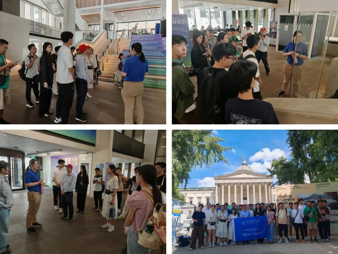 8月14日,交流团到访伦敦大学学院,在接待师生的引导下,交流团先后参观了学校代表性建筑,并对学校发展历史、杰出学术成果和建设情况有了初步了解。漫步于学校的现代化教学区时,志愿者们热情地介绍了建设巧思:图书馆的玻璃穹顶不仅能实现自然采光,其特殊材质还能过滤 90%的紫外线,保护珍贵的古籍藏书;实验室的模块化设计可以根据不同学科需求快速重组,在上个月刚完成从生物化学到材料科学的场景转换。此次到访不仅使交流团成员对伦敦大学学院的历史底蕴、学术实力与校园文化有了更加全面深入的认识,也为双方搭建了良好的沟通桥梁,为进一步推动学术交流与务实合作奠定基础。