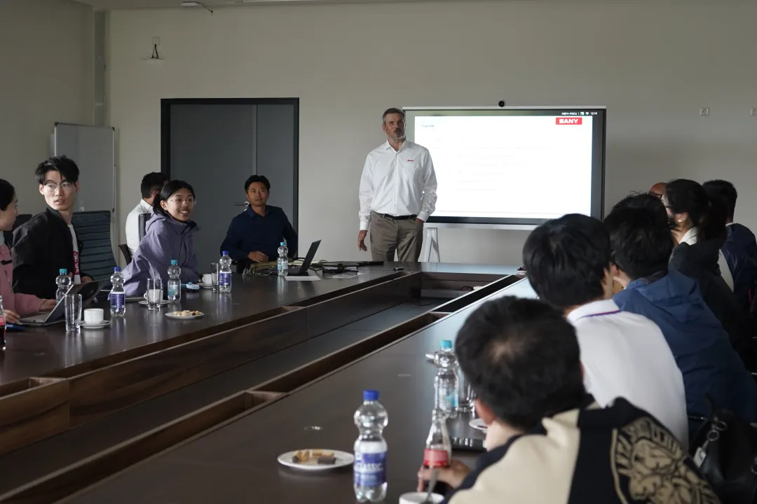 随后,交流团转赴三一重工欧洲研发中心,在与研究人员的交流中了解了三一重工的全球化发展历程与海外战略布局。在专家的指导下,交流团成员还体验了虚拟挖掘机操作训练和实体挖掘机驾驶操作,在实践中深化了对先进装备制造的理解。