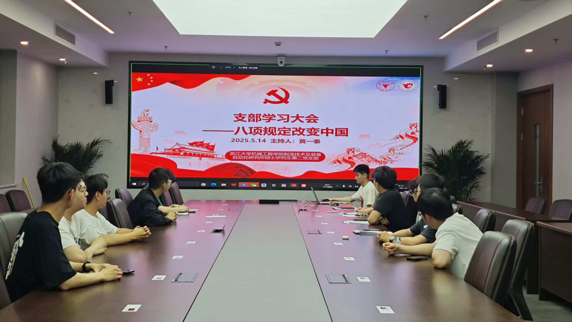 2025年5月14日,机械工程学院制造硕士第二党支部成员于开物苑1幢302会议室举办了关于“八项规定改变中国”支部学习大会,部分未能到场的成员以线上会议的方式参与活动,支部副书记黄一泰主持了此次活动。