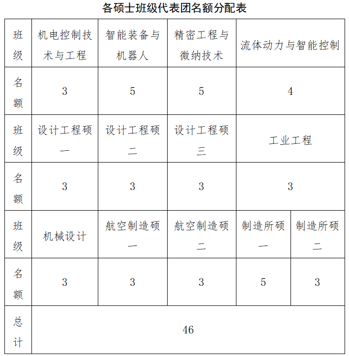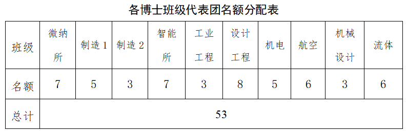 4.各班在确定参会代表后,需推荐其中1人作为校研代会/博代会机械工程学院代表团代表候选人(微纳、智能、设计工程三个博士班级需要推荐其中2人)。