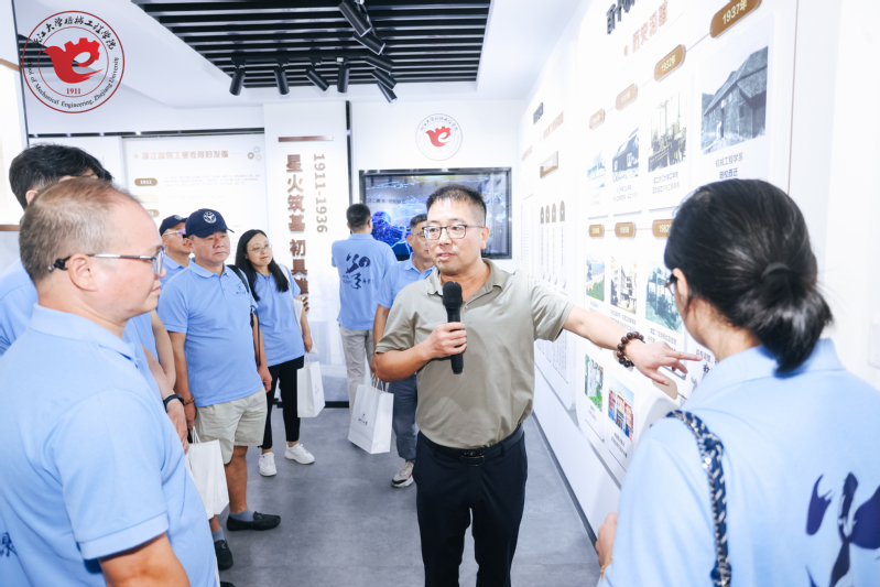 下午,校友们来到紫金港校区,大巴驶达开物苑。自学院2022年从玉泉校区搬至紫金港校区后,不少校友是第一次来到学院新家,变了的是大楼,不变的是“浙大机械”四个字。学院发展联络办公室的潘善洪老师、李雨欣老师在学院门前迎接校友,随后,众人在大楼前合影留念。走进大楼,屏幕上循环播放的两个班级合影唤醒回忆,大家呼朋唤友,在旧照前拍摄新合影,笑声阵阵。