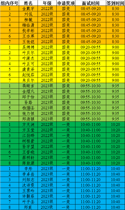 经过前期申报,资格复查,现通知2024-2025学年国家奖学金及浙江大学一等奖学金面试名单与安排如下: