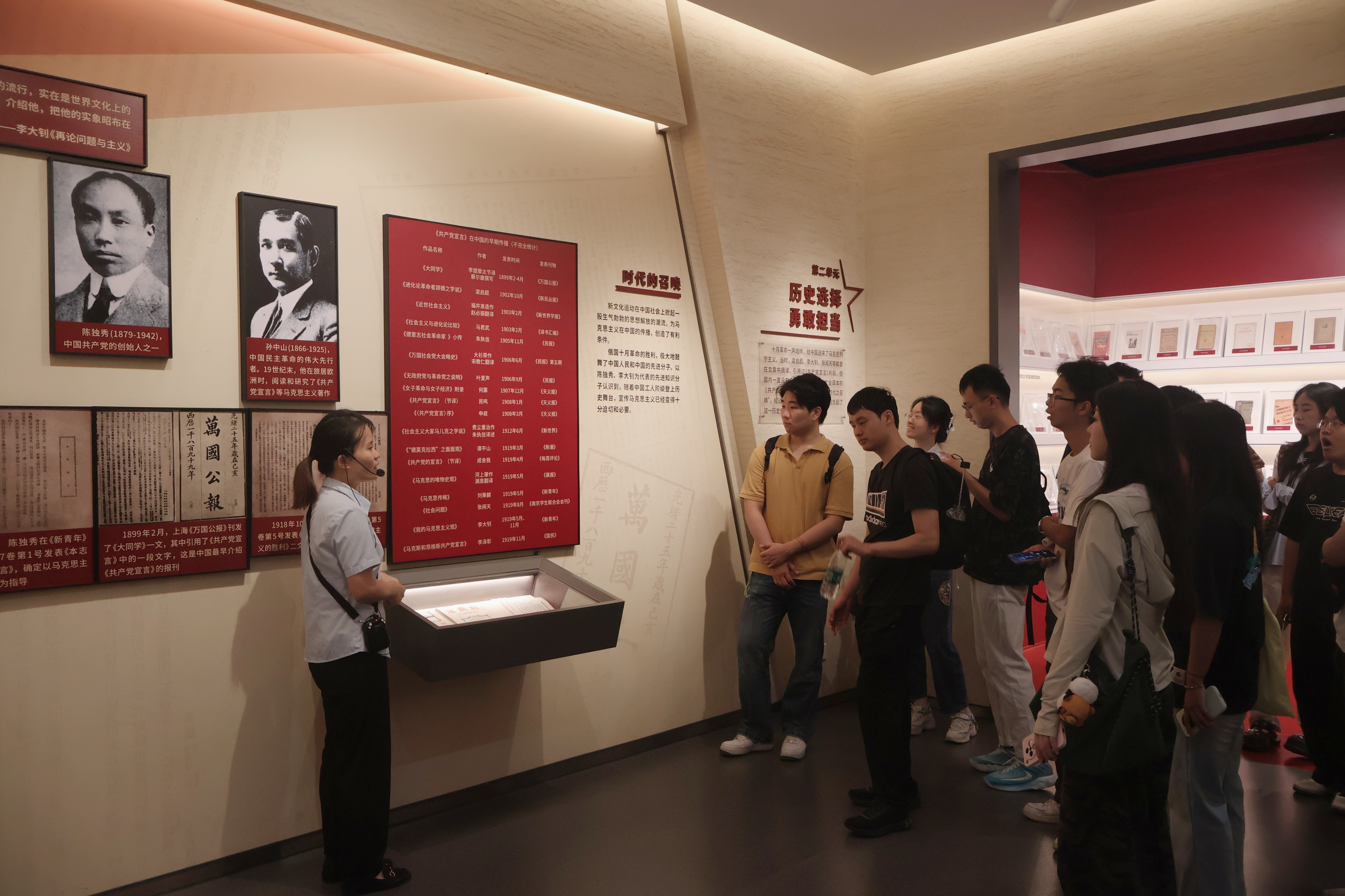 部分新生同学在讲解员的带领下参观了陈望道故居党史教育基地。走进望道展示馆,从探求真理到救国图强,陈望道先生的光辉历程如同一部生动的教科书,同学们系统了解了《共产党宣言》的诞生背景、翻译历程及不同版本的发展演变,见证了思想跨越时空的力量;在陈望道先生翻译《共产党宣言》的柴房旧址,同学们静立于此,从每一件旧物中感受真理追寻者的执着身影,最动人的莫过于“真理的味道”这一永恒瞬间;从为追寻真理而更名“望道”,到专注译书误蘸墨汁却觉甘甜,同学们从信仰的源头汲取了“不忘初心、牢记使命”的担当力量。