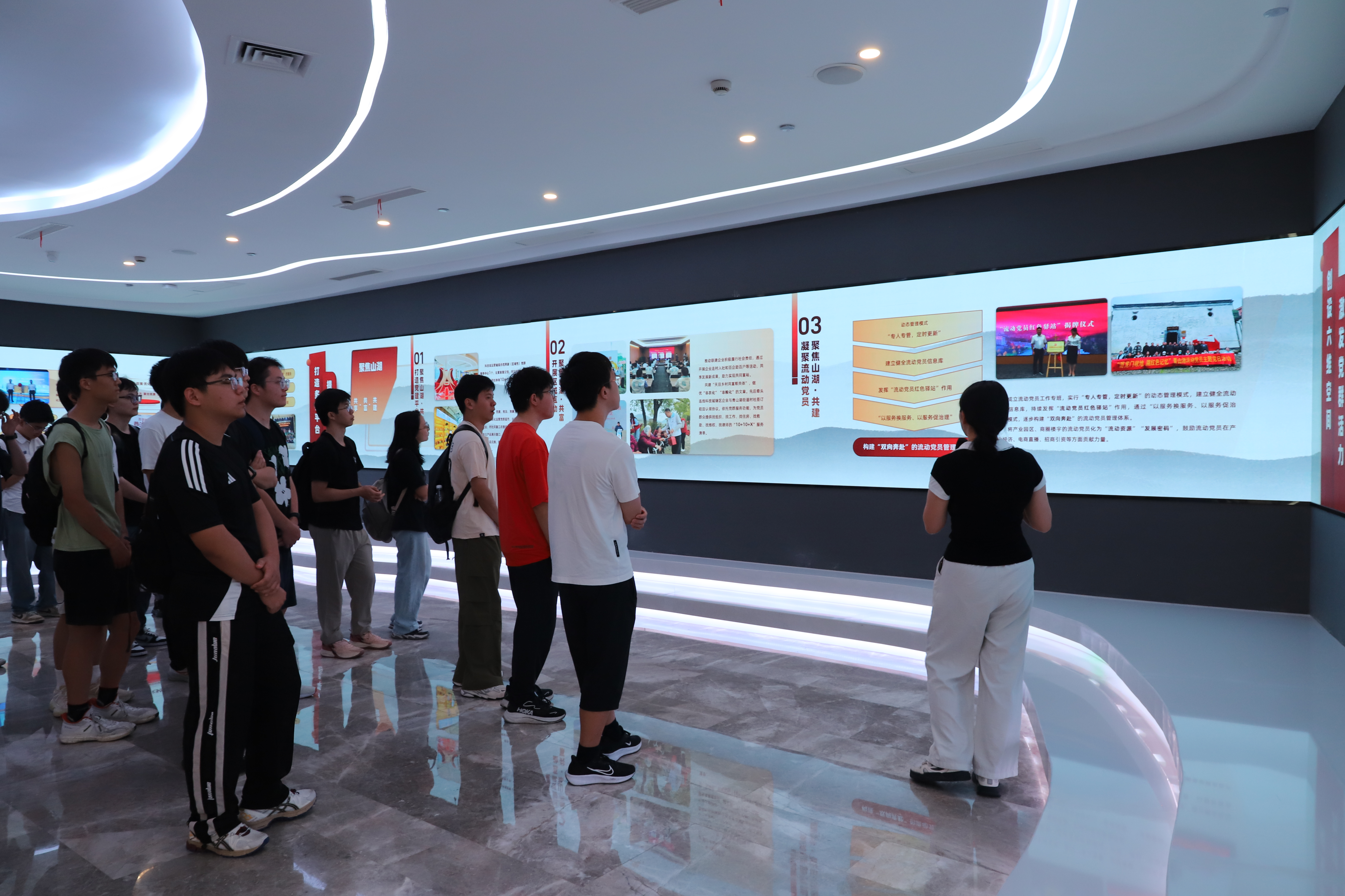 另一部分新生同学在讲解员的带领下参观了青山湖科技城党群服务中心。青山湖科技城党群服务中心致力于打造特色智慧党建平台,讲解员带领同学们依次参观学习了智慧云馆、积分超市、城市书屋、社团创享、党建VR体验、党建知识竞答、共享法庭等十余个“功能区”,同学们现场体验学习了“鼻尖上的党史”,其将嗅觉科技融入画面表达,创新且生动地再现了党的百年奋斗历程。青山湖科技城党群服务中心的建设让科技城充分搭建起“大党群”平台,提升了“两新”党建政治引领力,激发了组织凝聚力,增强了党群服务力,为全力推进科技城建设发展提供坚强的组织保障。