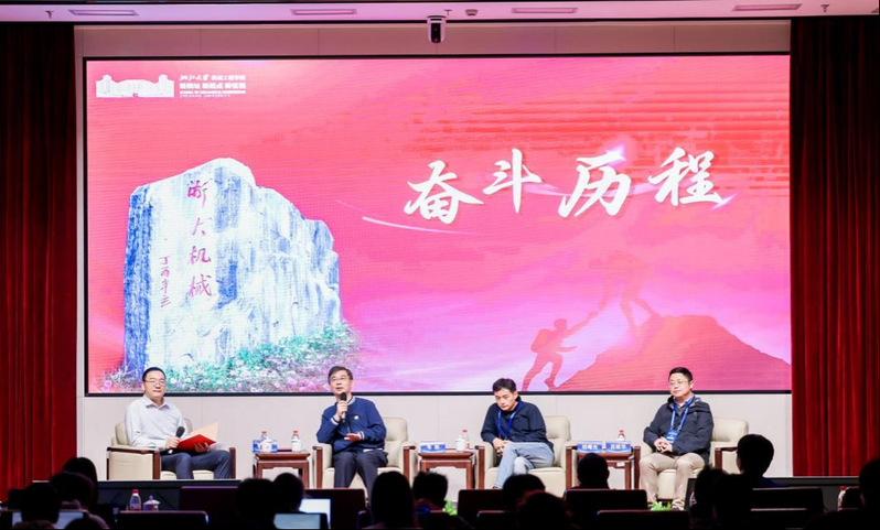 2025年11月9日上午,浙江大学机械工程学院校友“开物论坛”在紫金港校区开物苑报告厅举行。荣旗工业科技股份有限公司董事长、总经理钱曙光校友,七牛云联合创始人兼总裁吕桂华校友,上海船舶设备研究所研究员韦彬校友受邀重返母校,与师生开展交流对话。学院党委书记刘振宇,副院长赵朋,党委副书记、纪委书记田慧,院长助理韩冬等领导班子成员,团委书记金娟霞、副书记邵文琦,发展联络办公室潘善洪、张凯、李雨欣等师生代表150余人共同参与本次活动。论坛由学院院长助理韩冬主持。