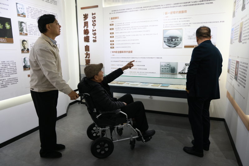 走进院史馆,潘善洪老师向翁校友讲述学院的历史。谈到上世纪五十年代,潘老师笑着说:“这段历史您比我更熟悉。”翁老的目光抚过一张张旧照、一件件旧物。当目光落到其中一张照片上时,他眼睛一亮,认出了恩师:“给我们上课最多的是全永昕老师。”