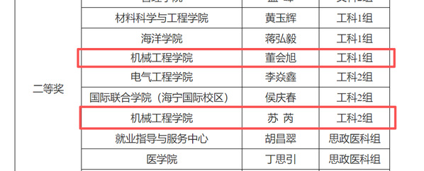 在各学院(系)、相关教学单位组织初赛、选拔推荐的基础上,学校于2025年11月15-20日组织网络评审,11月21日组织现场评审。 经评审专家评定,机械学院推选的两位青年教师董会旭老师、苏芮老师均进入决赛,并最终双双斩获二等奖的好成绩!恭喜两位老师!