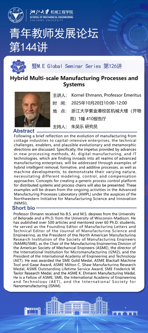 浙江大学机械工程学院第144期青年教师发展论坛暨M.E Global Seminar Series 第126讲