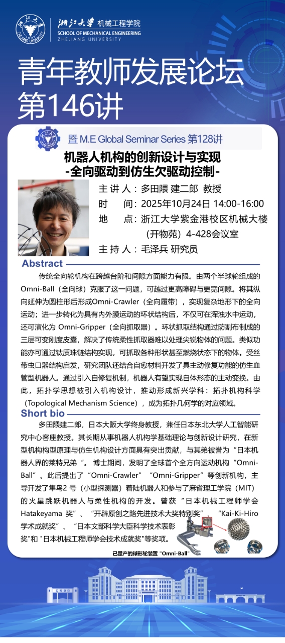浙江大学机械工程学院第146期青年教师发展论坛暨M.E Global Seminar Series 第128讲