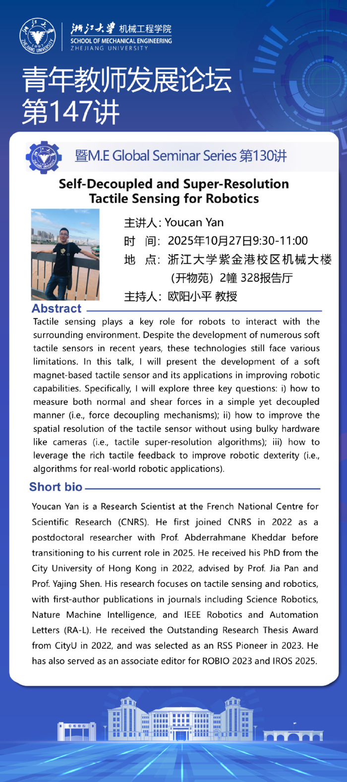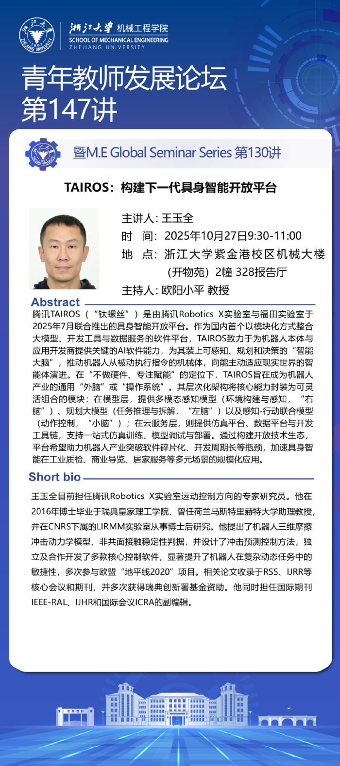 浙江大学机械工程学院第147期青年教师发展论坛暨M.E Global Seminar Series 第130讲